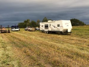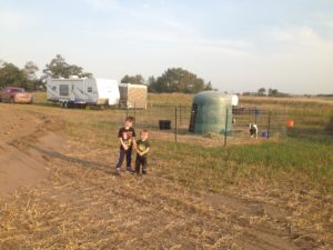 The cows and yaks were out at my parents pasture, so we didn’t have to worry too much about them.  We had pens set up using hog/goat panels for the pigs and goats right beside the camper, so we didn’t have to go far to do chores and we also didn’t know where their permanent location would be yet.  We used a solar fencer to run electric fence to keep the pigs from digging out under the panels.  We borrowed a trailer and water tank from my parents as well, so we used that to haul water from town for the animals to drink.